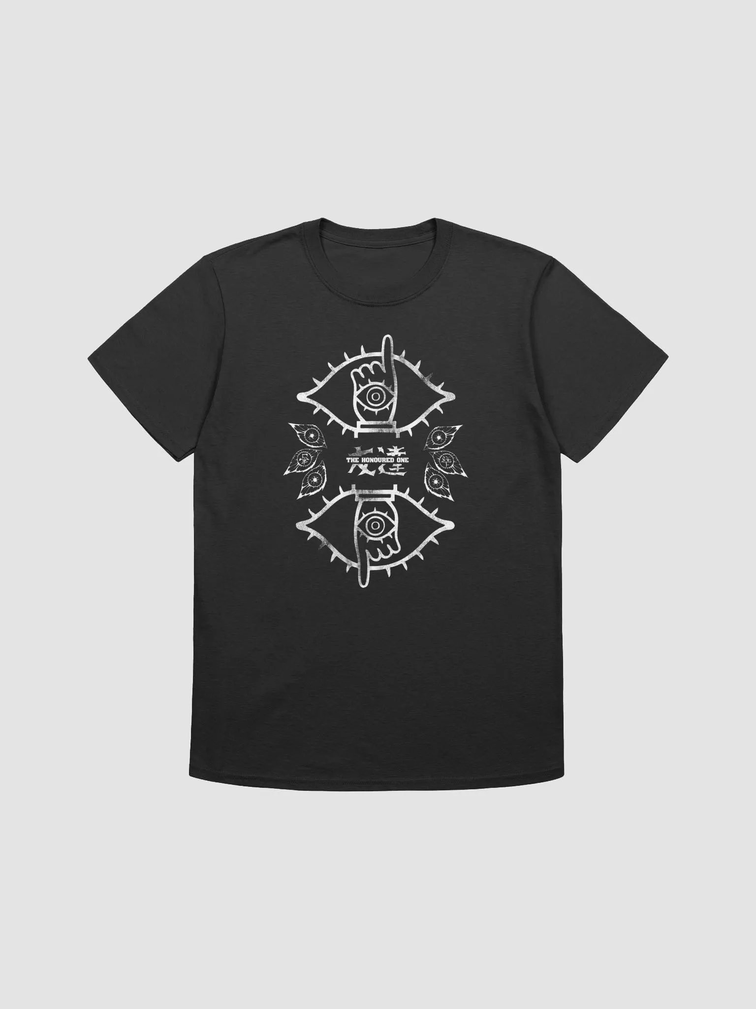 Unisex t-shirt with customized, numerous anime eyes emblem, crafted from soft lightweight fabric for comfort and style.